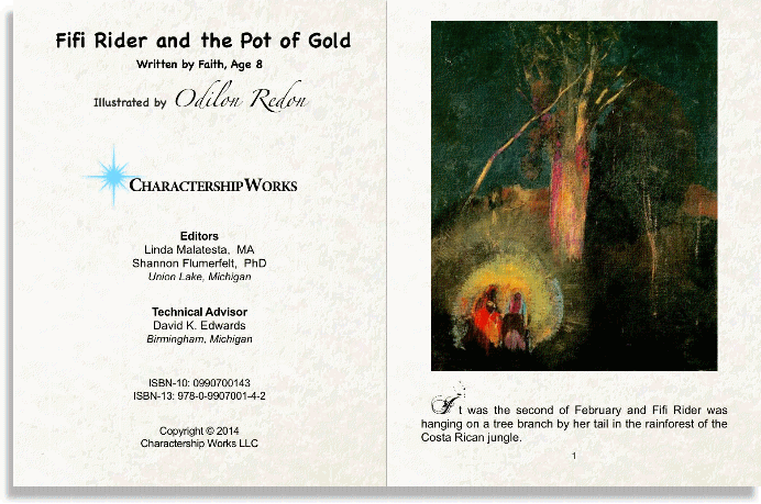 Fifi Rider and the Pot of Gold is a magical storybook written by a child and illustrated by master artist, Odilon Redon (1840-1916). Fifi has a mission to find a perfect rainbow and its legendary pot of gold. Undaunted by setbacks and challenges, Fifi continues to pursue her dreams. She experiences success through perseverance. Fifi finds joy through sharing her success and relishes her new lifestyle. The beauty of this story engages the reader to consider critical lessons of creativity, leadership and character development. |